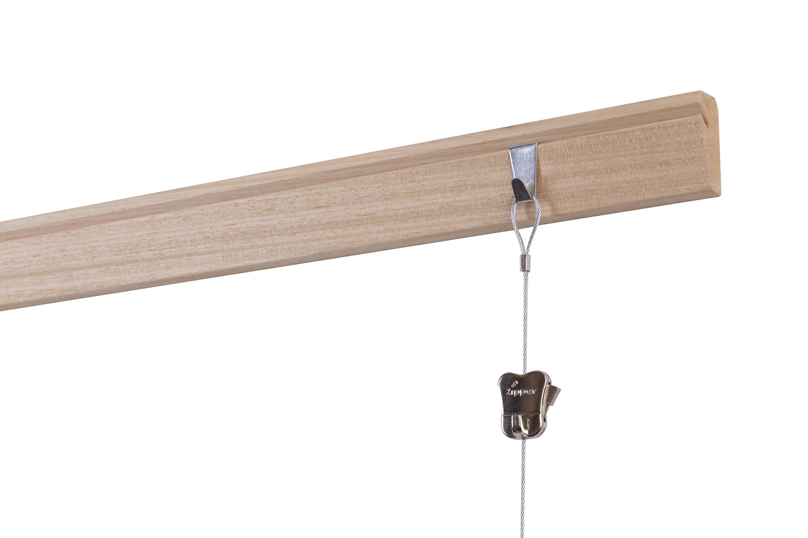 Belastbaar tot 20 kg: staalkabel + STAS zipper